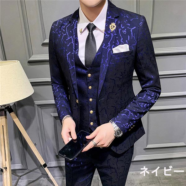 商品名 : スーツ メンズ 1ボタン スリムスーツ ステージ衣装 カラオケ 大会 ガラスーツ 大きいサイズ シングル 紳士服 ベスト付き 3ピース 細身 結婚式 メンズスーツ お洒落 フォーマル 男性 背広 花婿スーツ 3点セット ネイビー グリーン レッド S M L XL 2XL 3XLグローリーパーク
